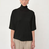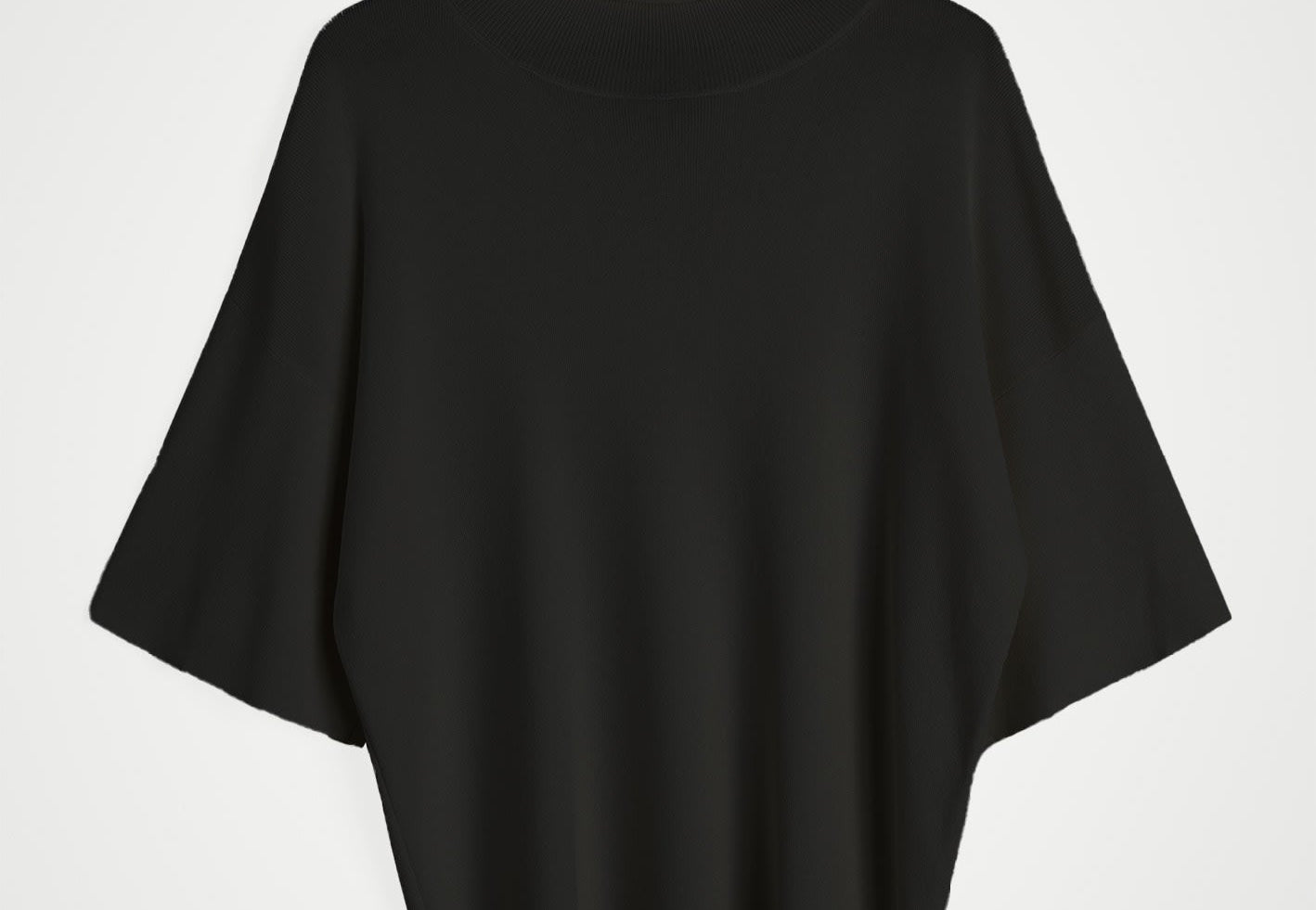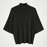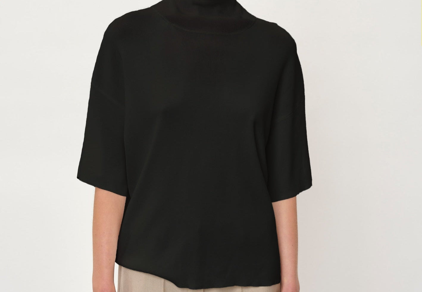 Introducing the Brittany Knit T-shirt: An oversized knitted t-shirt featuring long sleeves, drop shoulders, and a turtleneck.