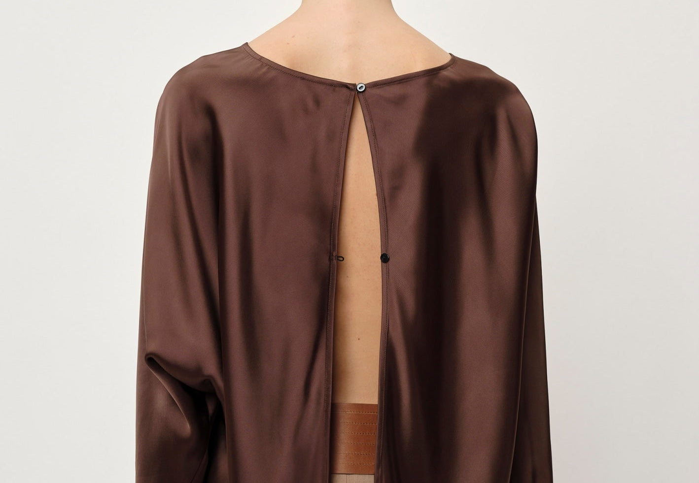 Introducing the Candy Blouse: A loose-fitting blouse with long, relaxed sleeves. The blouse features an open back with a two-button closure, allowing you to adjust the degree of openness.
