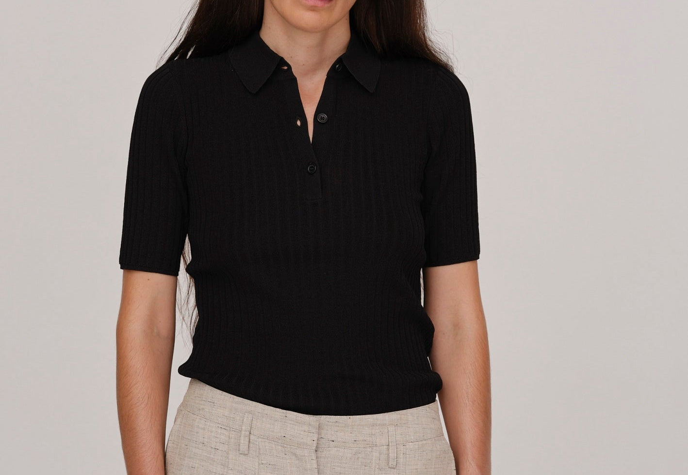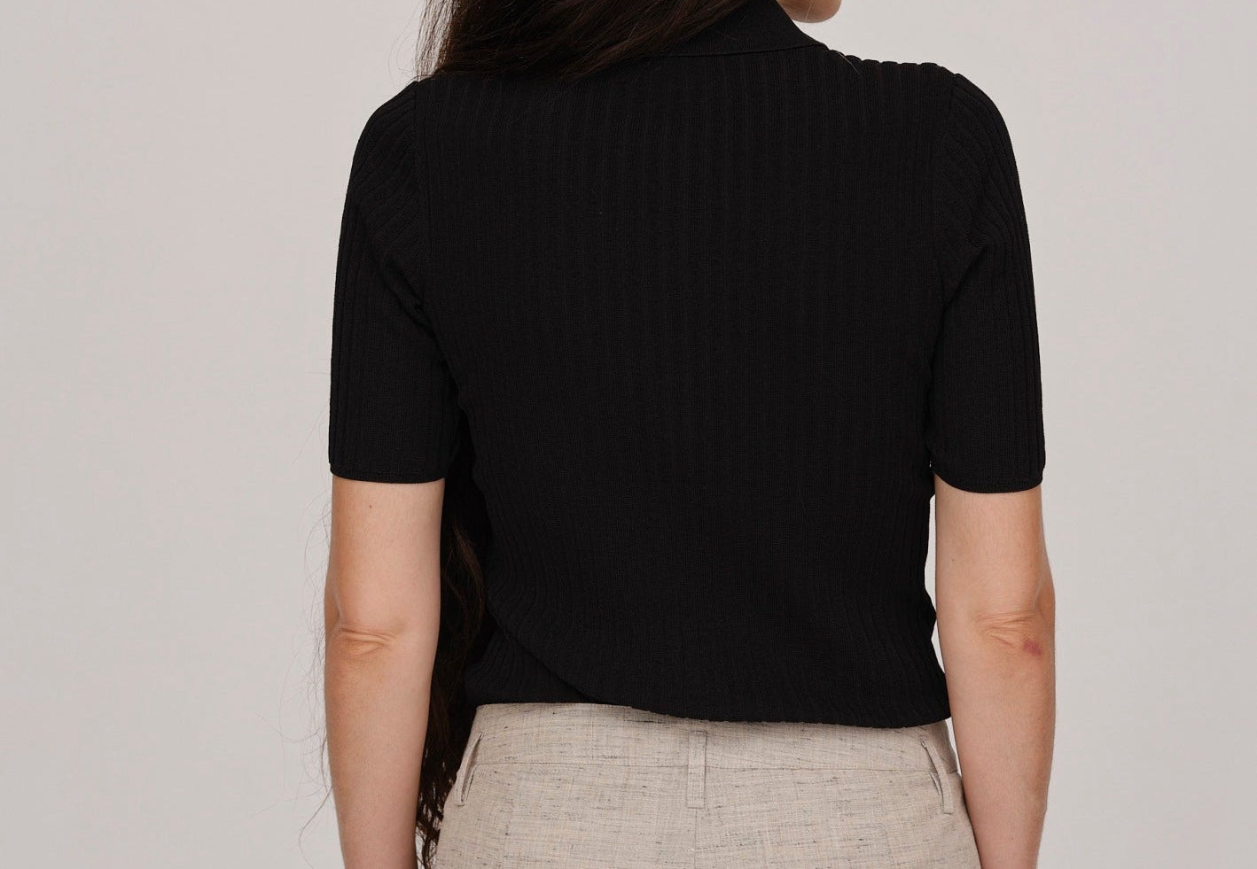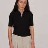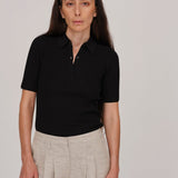 Dallas Knit Polo Blouse - Black