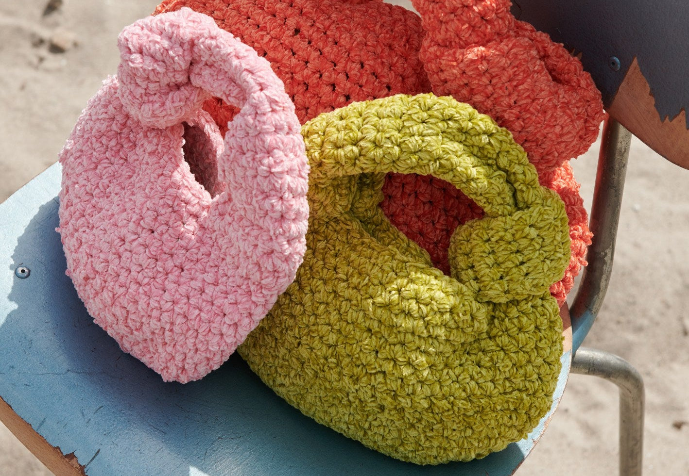 Grande is the perfect summer bag. The crochet construction screams summer effortlessness, while the boucle yarn adds fun color and texture to complement your looks. The banana shape is not only stylish but comfortable on your arm. The bags are handmade, and made in collaboration with @levisen_atelier.