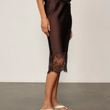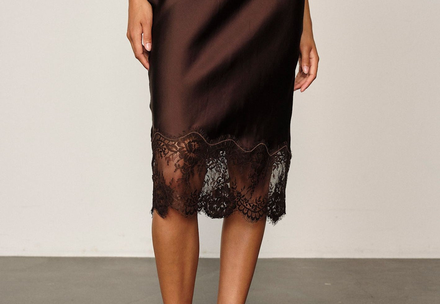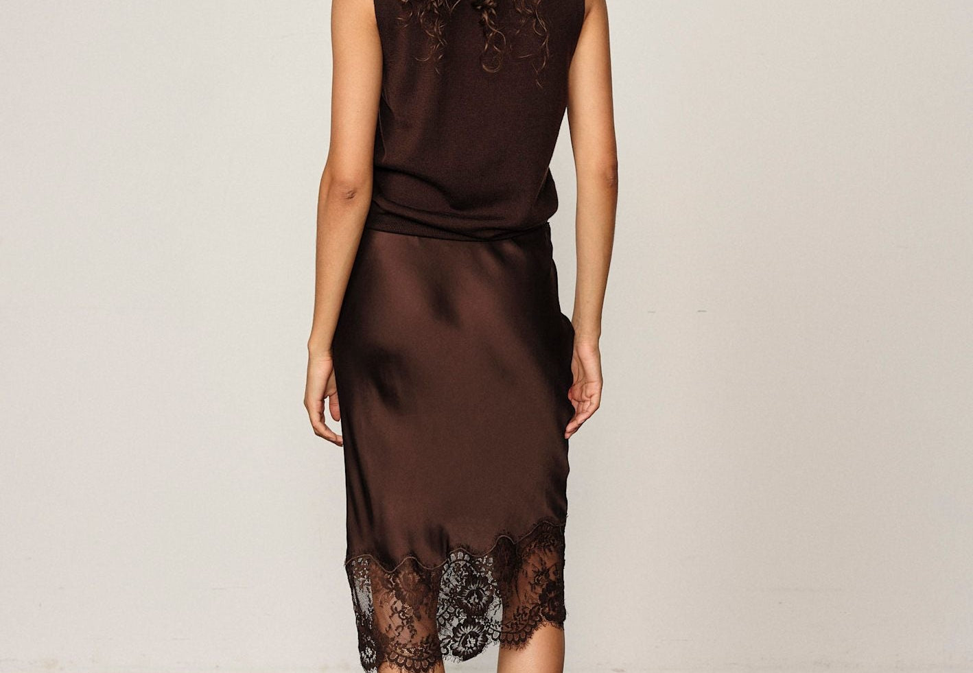 Defined by a refined, feminine silhouette with a soft drape and tactile hand-feel. Presented in this season’s deep brown hue — a timeless tone that pairs effortlessly across the wardrobe.