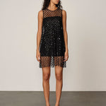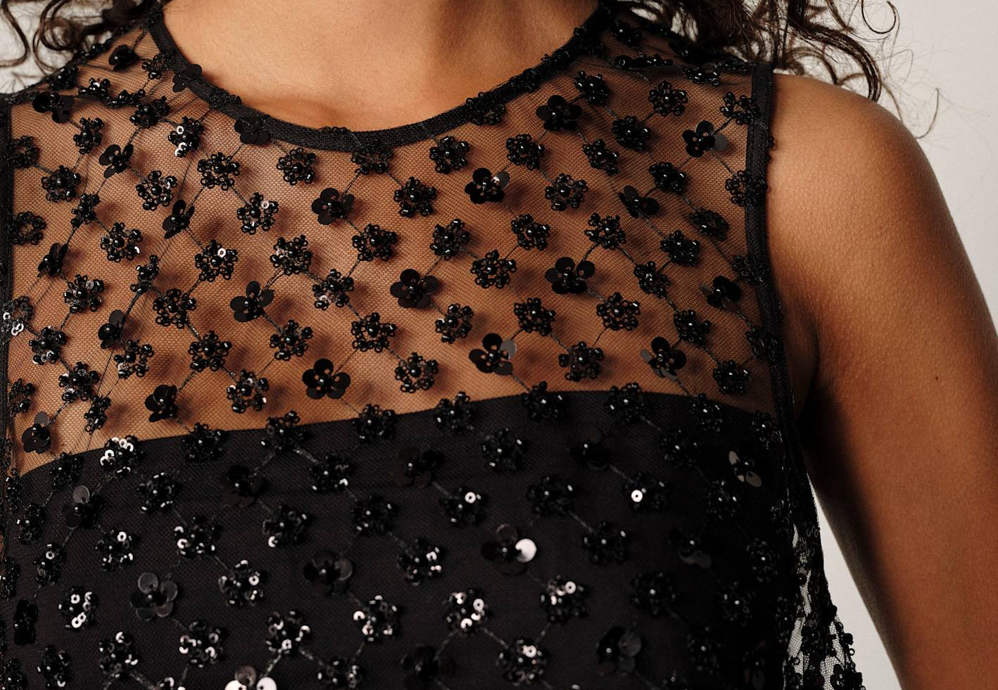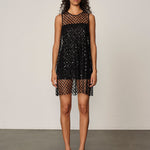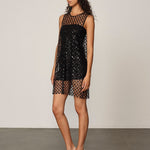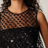 Cut in a straight silhouette with hand-applied floral sequins for subtle texture and light reflection. Comes with a matching black slip dress for effortless styling and a refined finish.