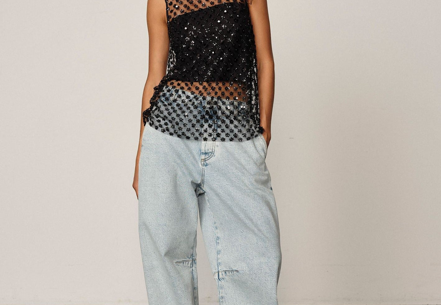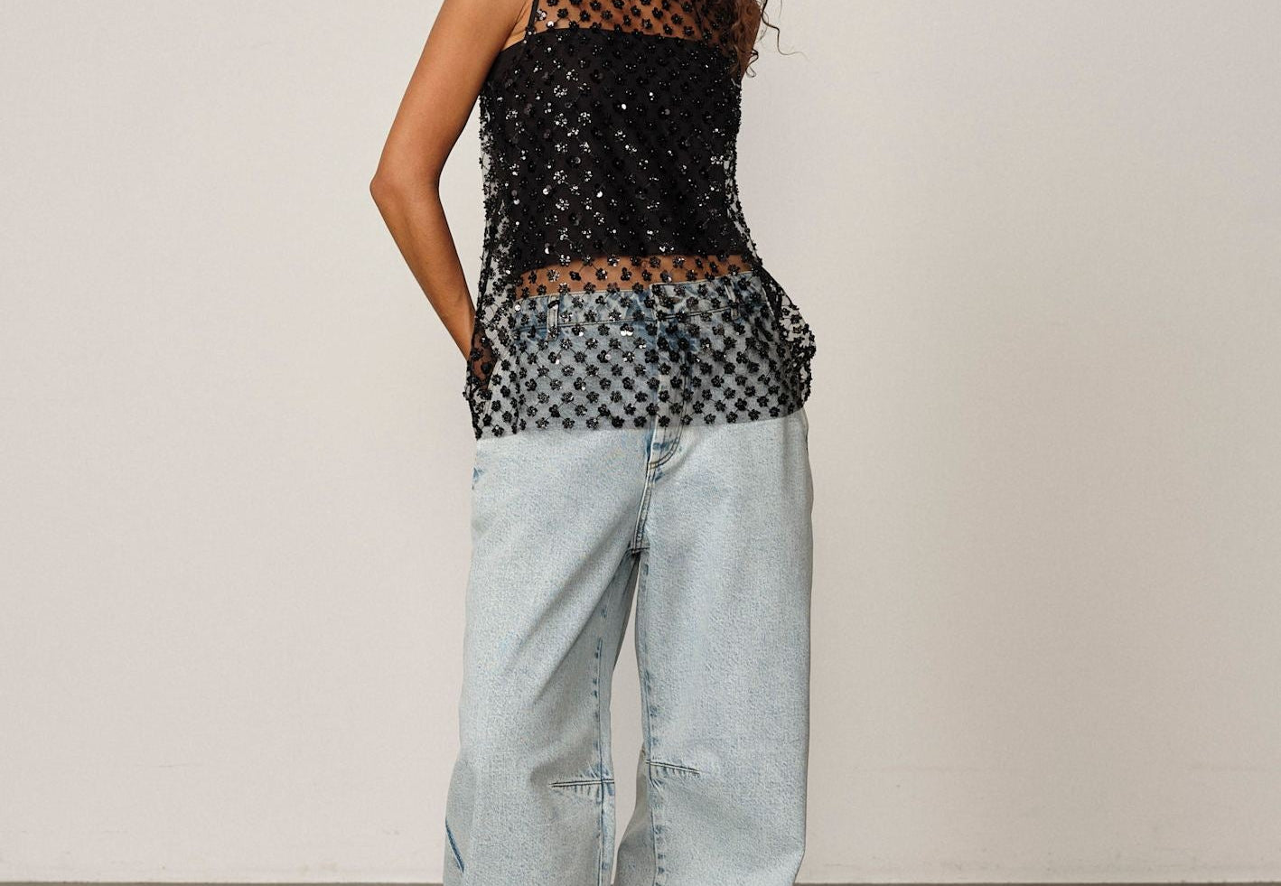 Detailed with floral sequins that create subtle texture and light play. Designed with a straight silhouette and comes with a matching tube top for effortless layering.