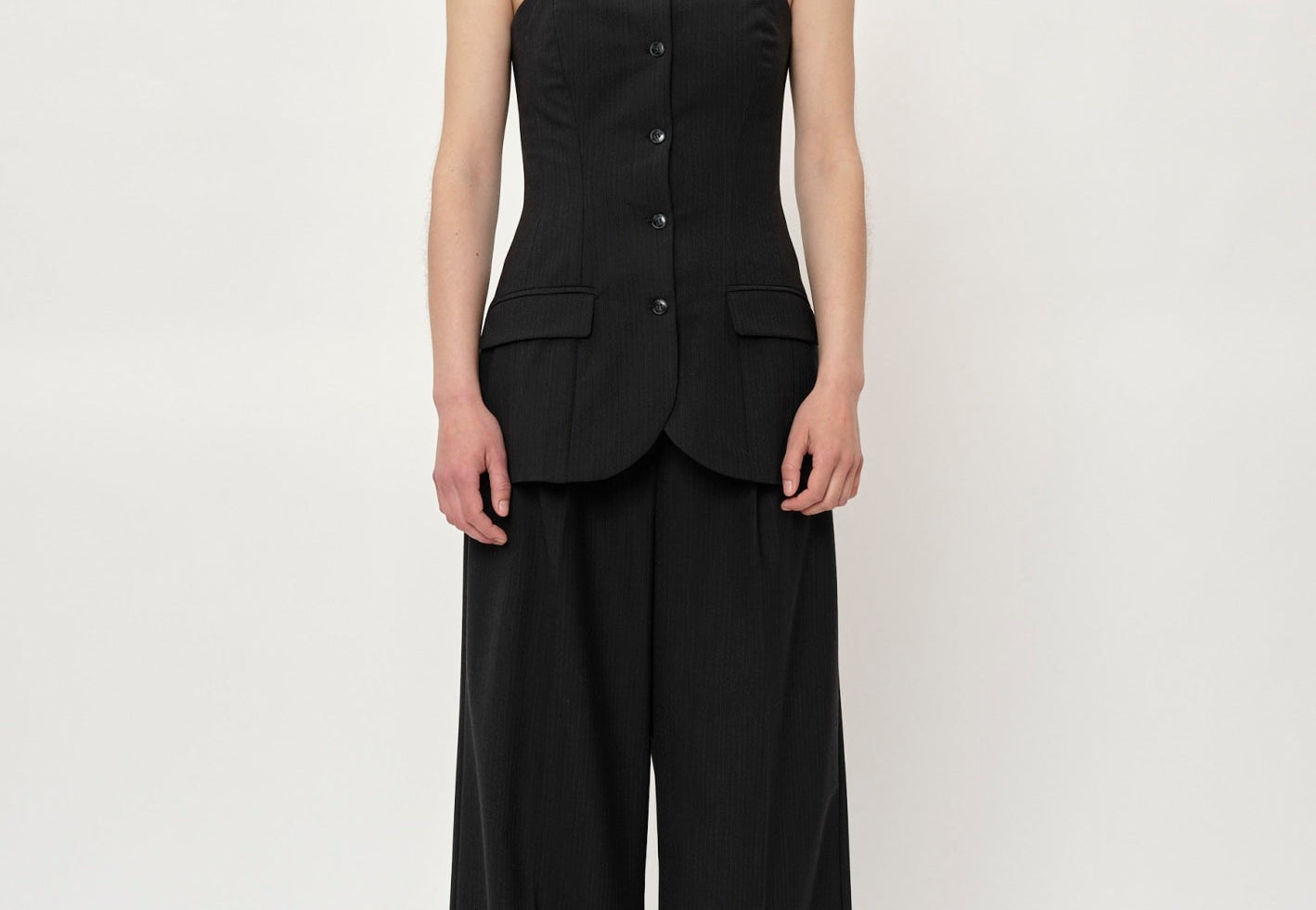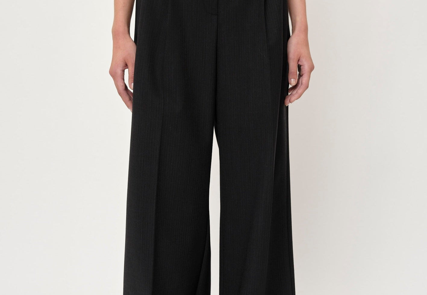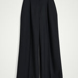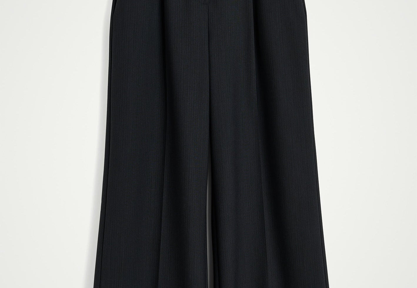 Introducing the Kelly Pants: Classic, mid-waisted long pants featuring two pleats at the front, a crease line for a tailored look, and a long cut.