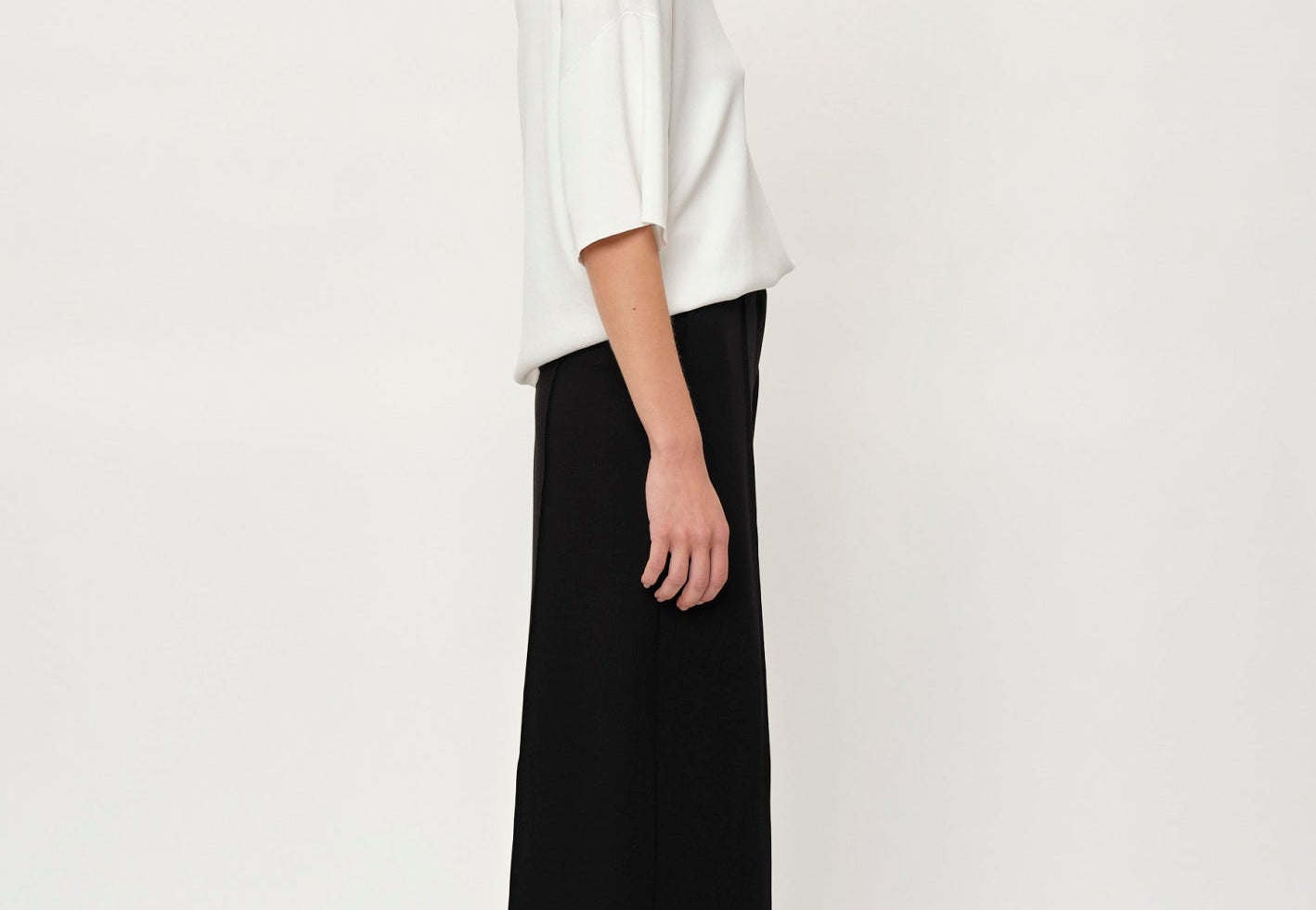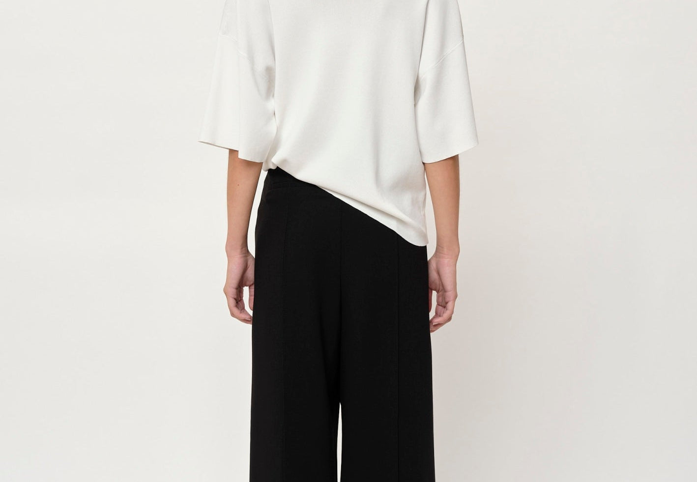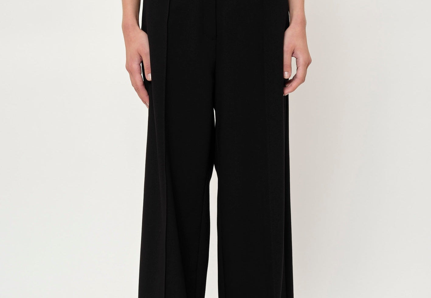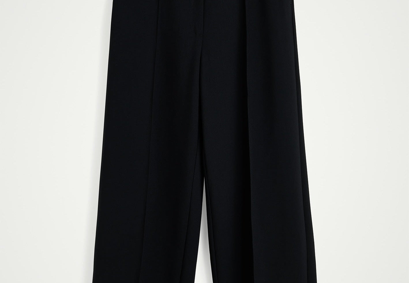 Introducing the Kimberly Pants: Classic, mid-waisted long pants featuring a stitched crease line at the front for a tailored look.