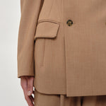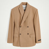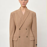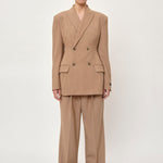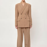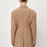 Introducing the Laila Blazer: A double-breasted blazer featuring darts at the waist for a tailored silhouette. It also has a slit at the back for added comfort and movement.