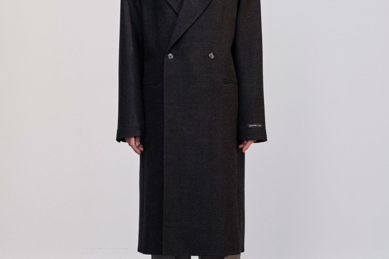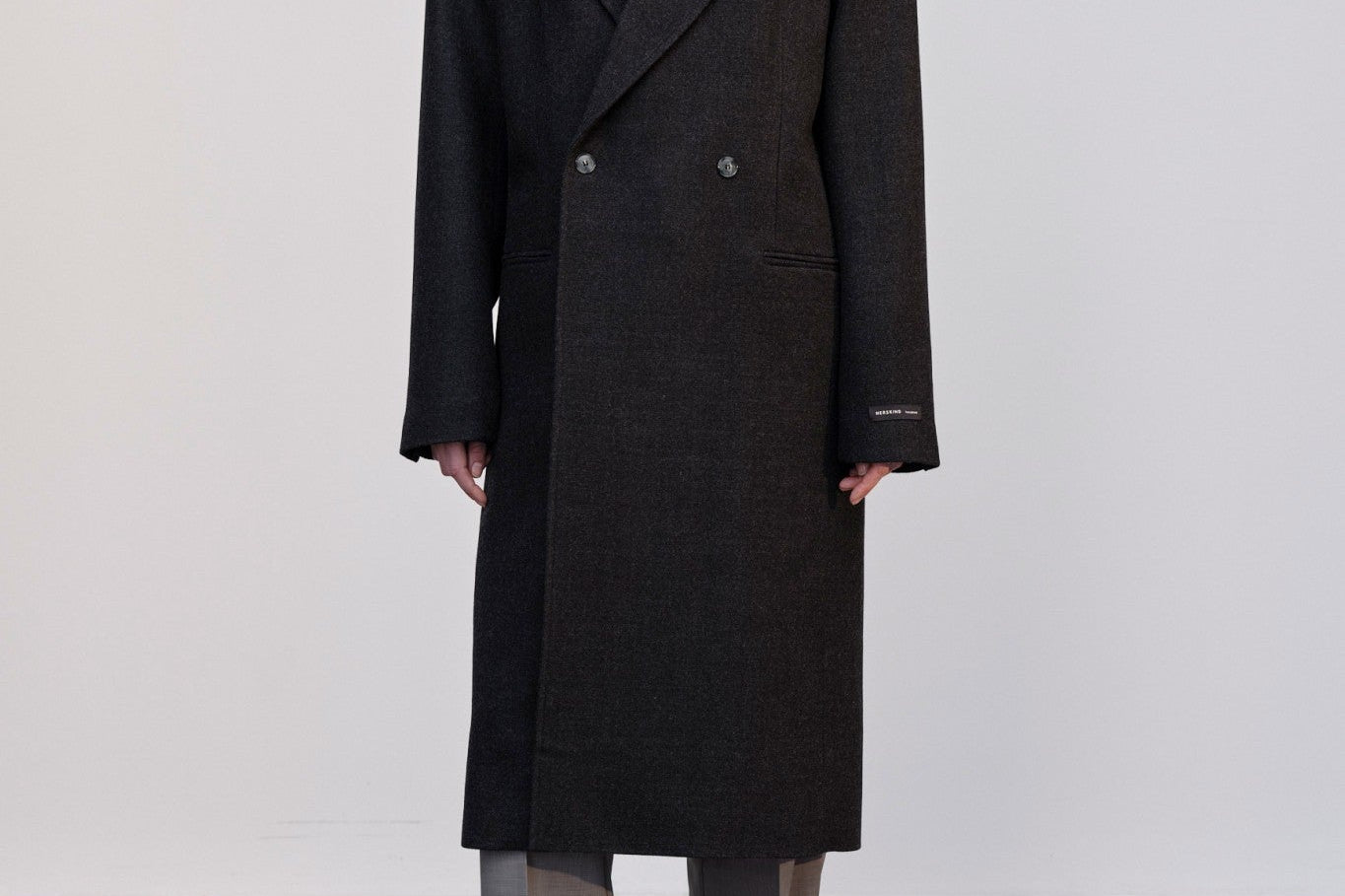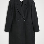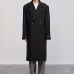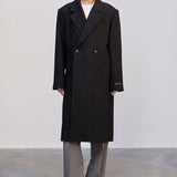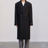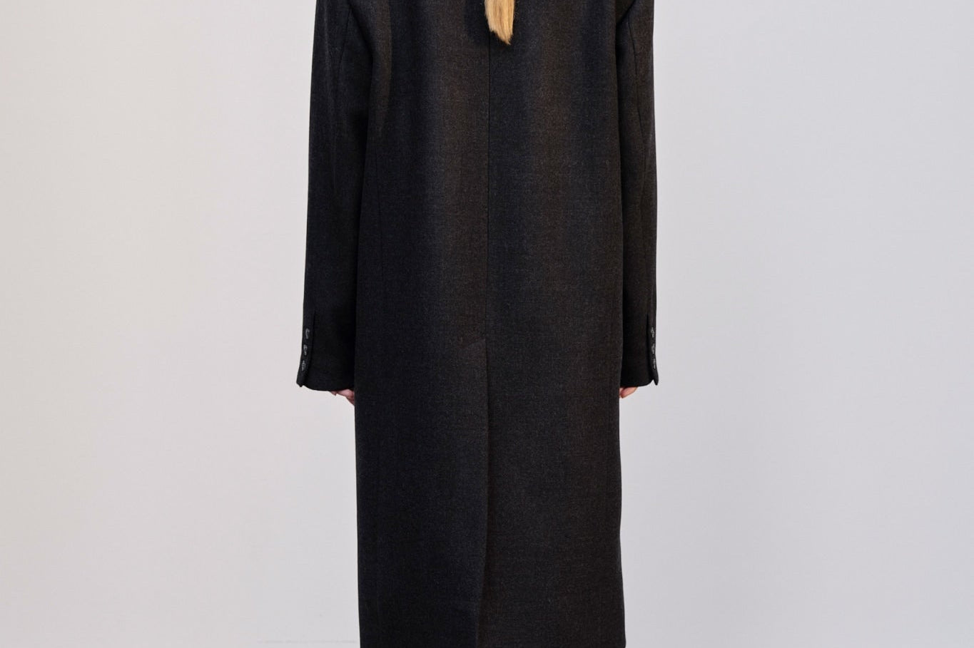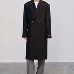 Introducing the Louis Coat: A men's-like coat crafted from 100% Italian fabric (Paultex), featuring a below-the-knees length, double-breasted design, big shoulders, and a high slit at the back.
