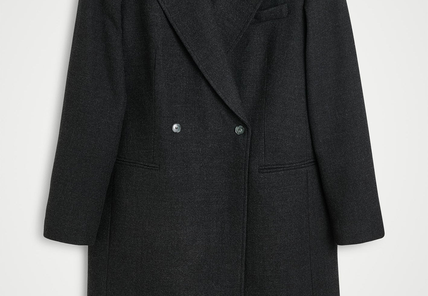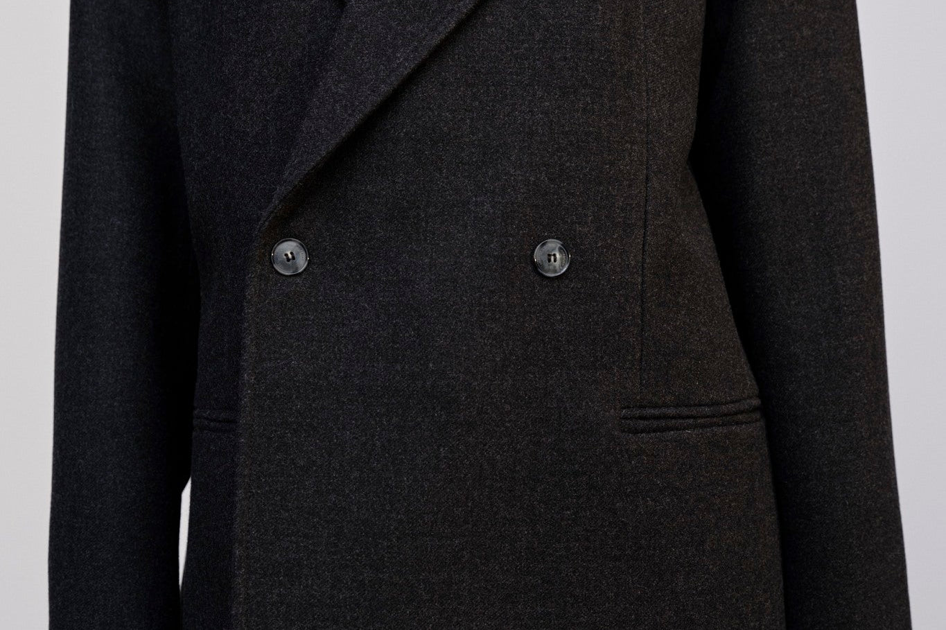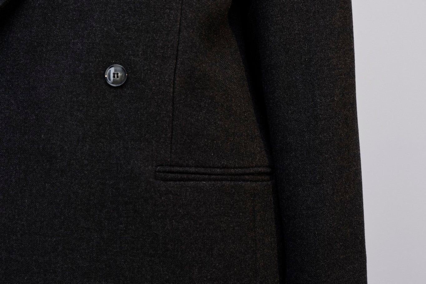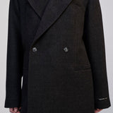 Introducing the Louis Coat: A men's-like coat crafted from 100% Italian fabric (Paultex), featuring a below-the-knees length, double-breasted design, big shoulders, and a high slit at the back.