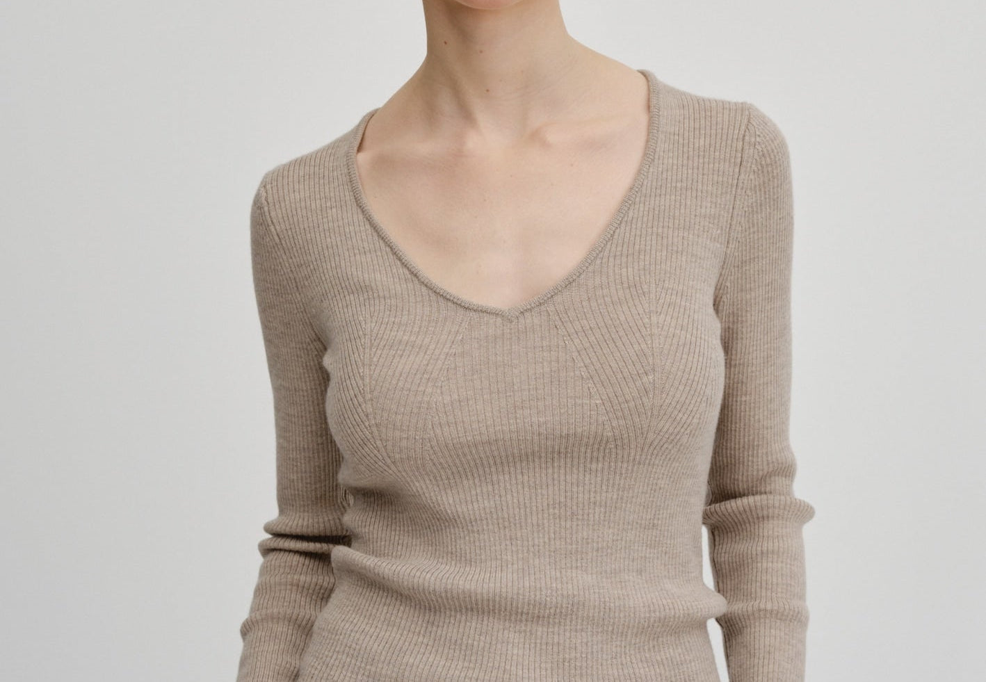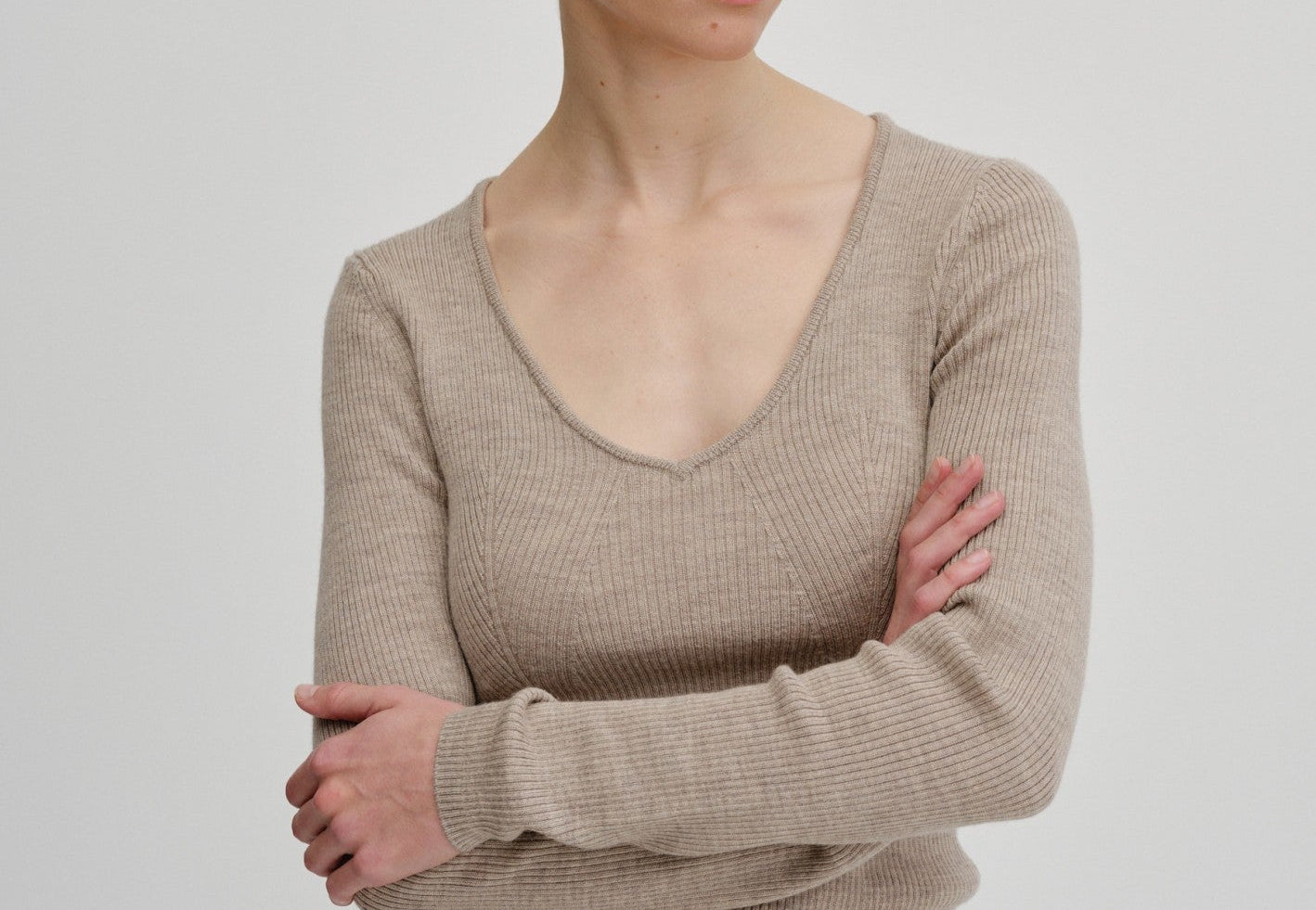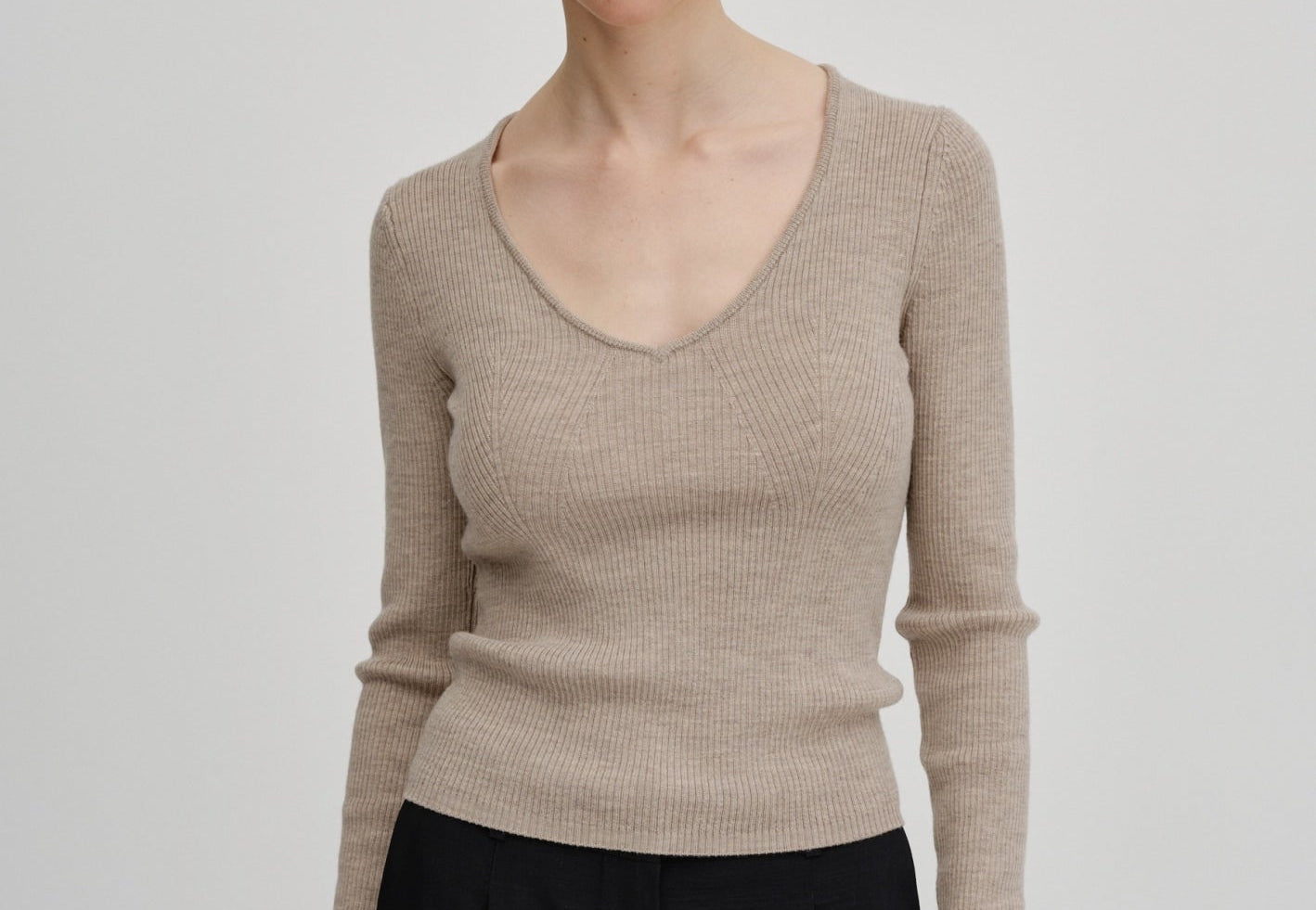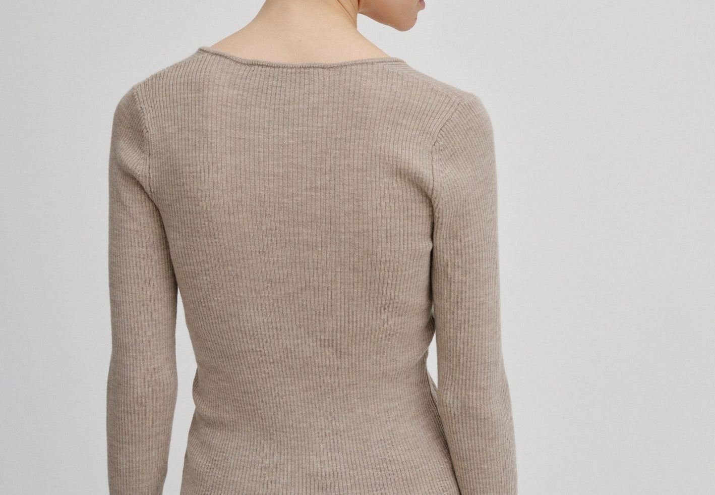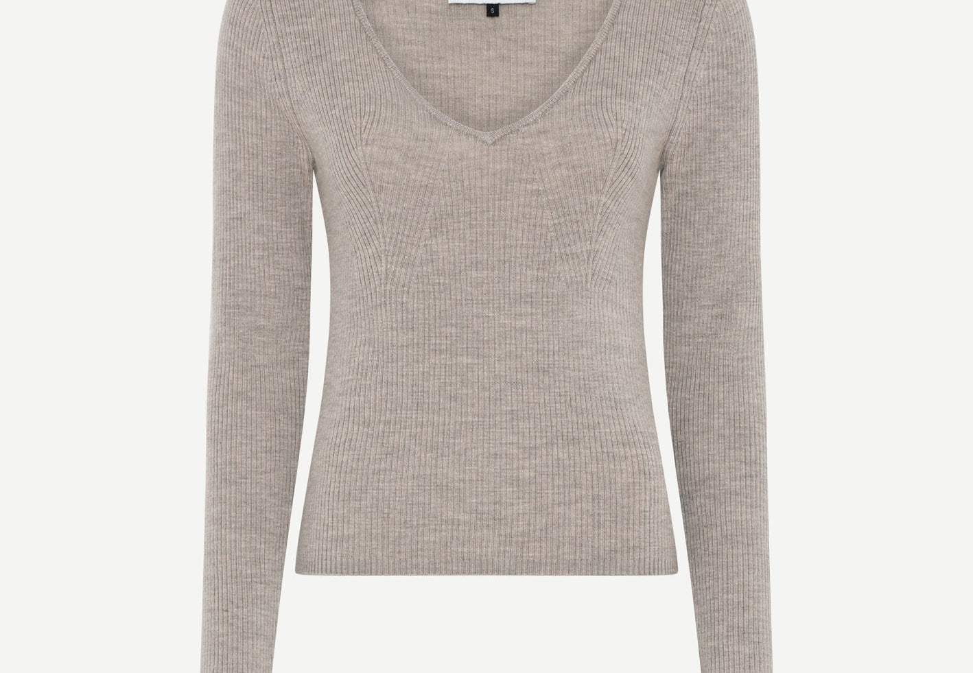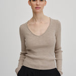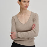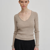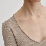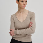 Knit blouse with a slim fit and regular length. It features long sleeves and a wide heart-shaped neckline.