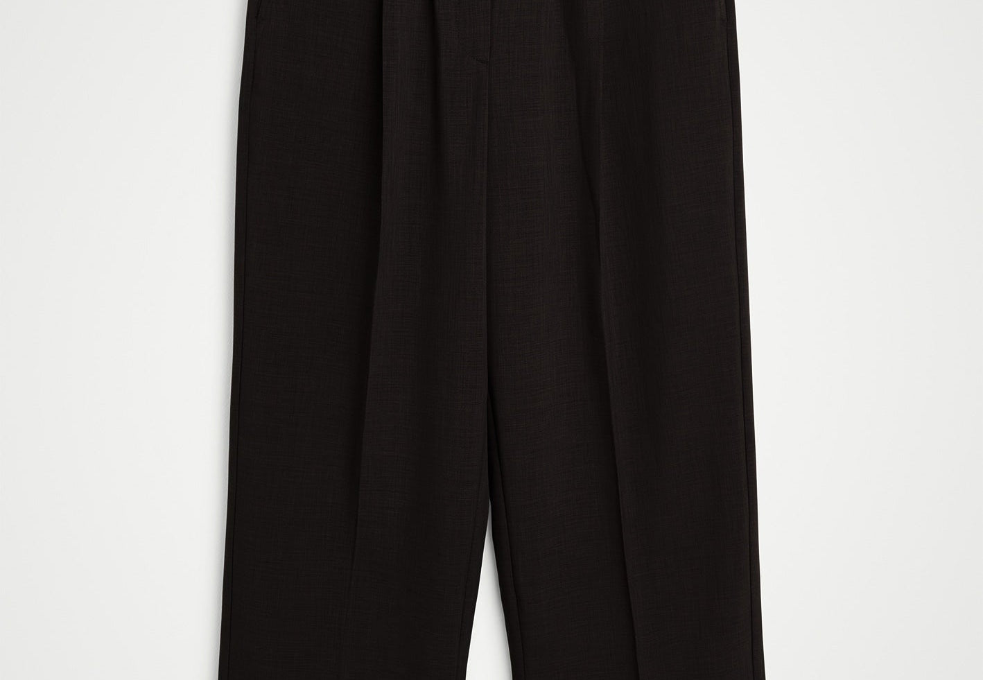 Introducing The Rupert Pants: Low-waisted tailored pants featuring a low crotch, loose fit, slit at inseam, and a high bottom hem.