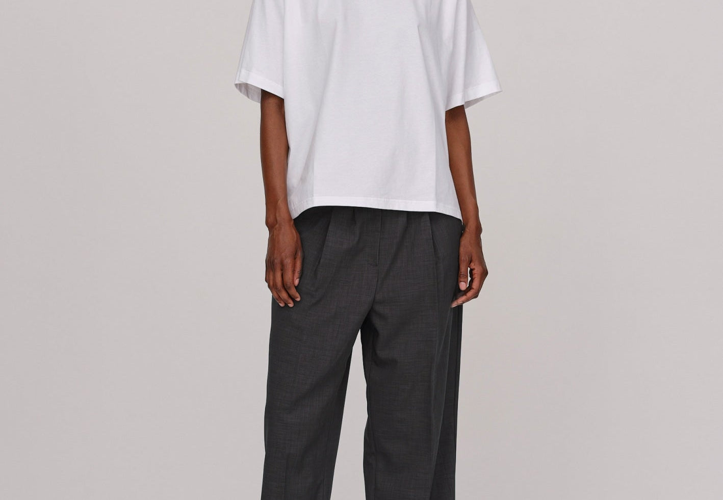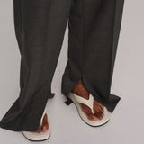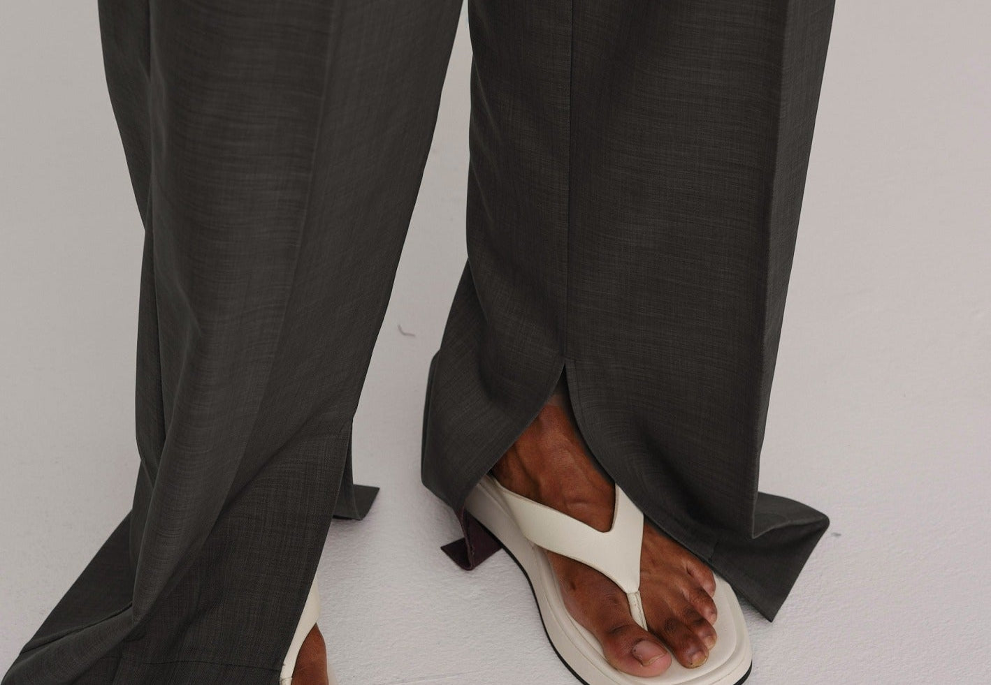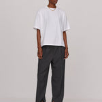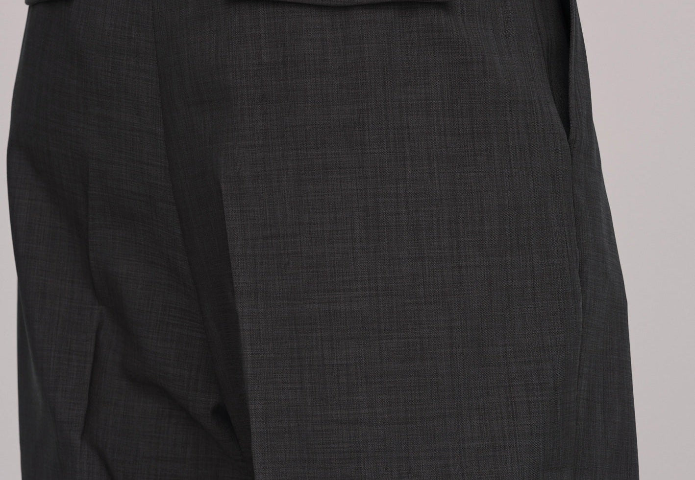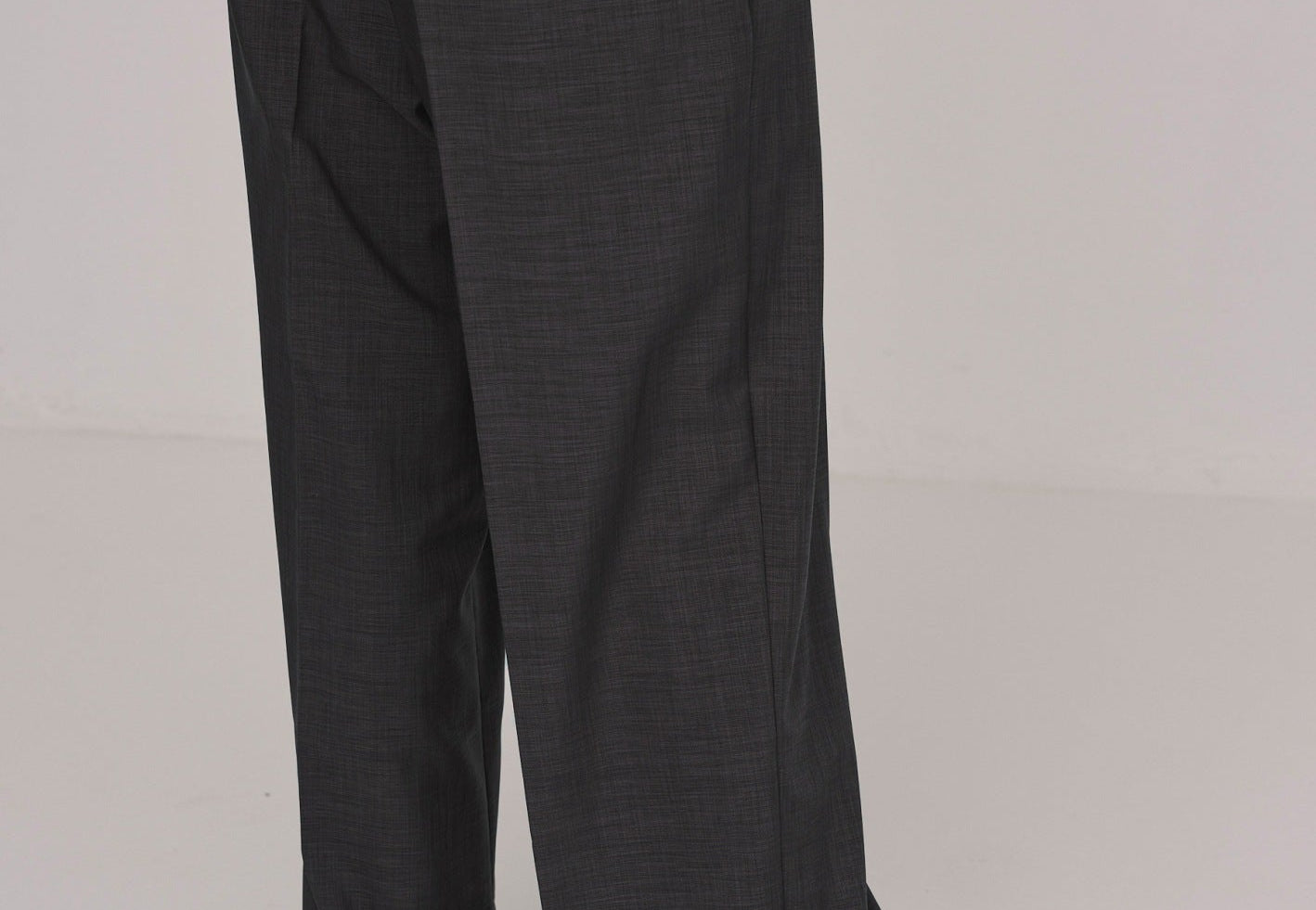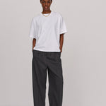 The Rubert Pants are relaxed-fitted long pants with pleats in the front, featuring a crease, a deep front and back rise, a paspel pocket with a 5-point flap at the back, and a slit at the inseam.