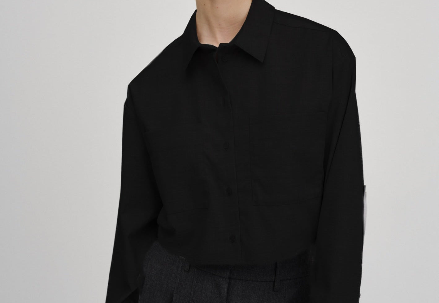 Samuel is an edgy take on a classic button up shirt. The cropped fit and flaring sleeves combine for a look that is edgy and cool.
